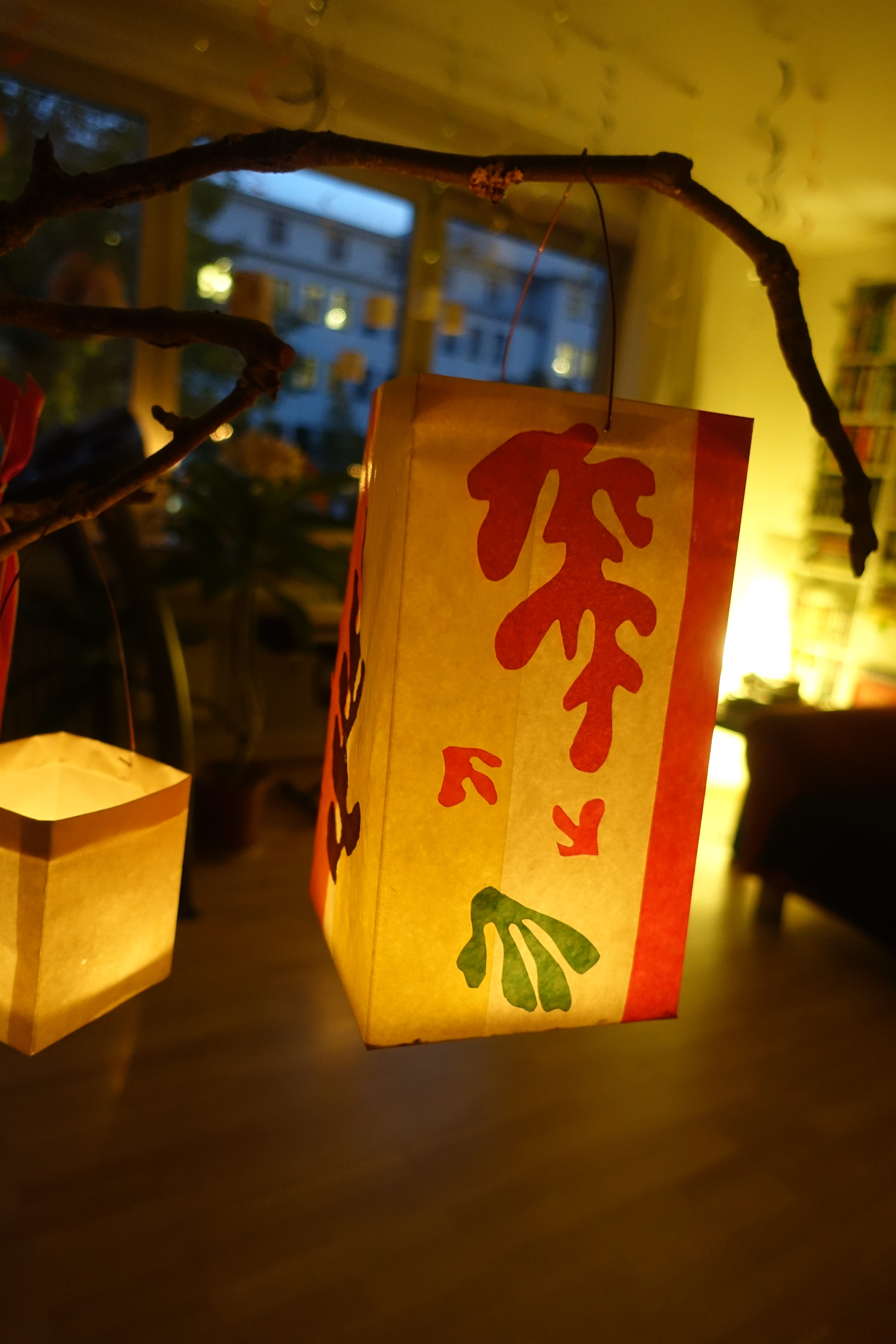 Gross ohne Rahmen Technische Details: Größe 120 mm X 120 mm X 220 mm, aus feuerfestem Papier, Drahtbügel, Gesamt höhe ca. 26 – 30 cm.